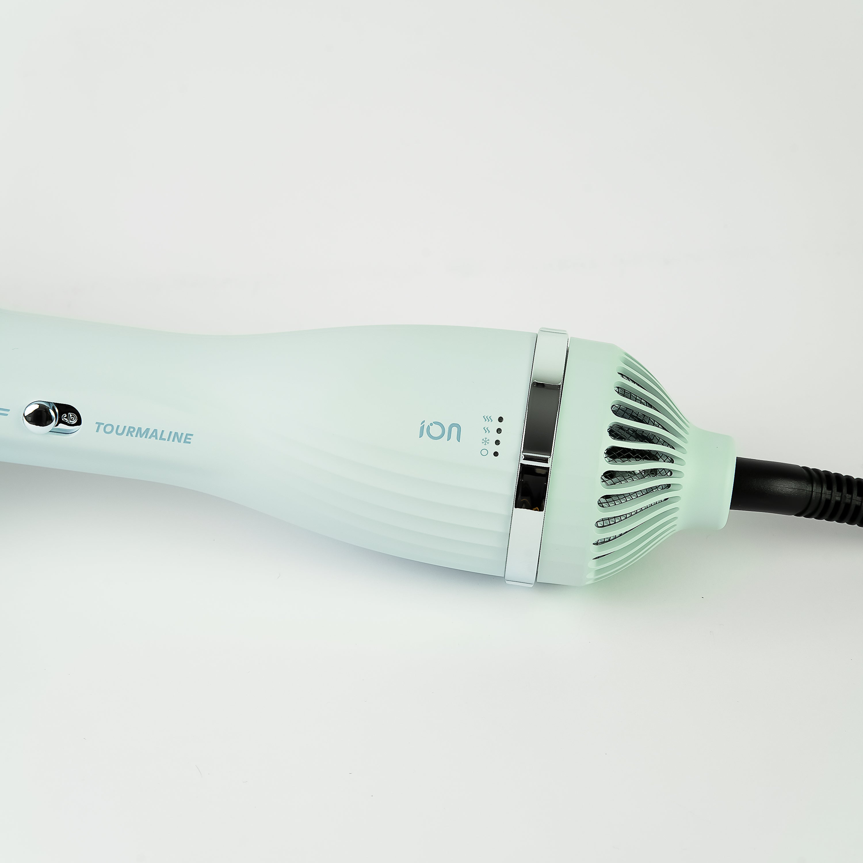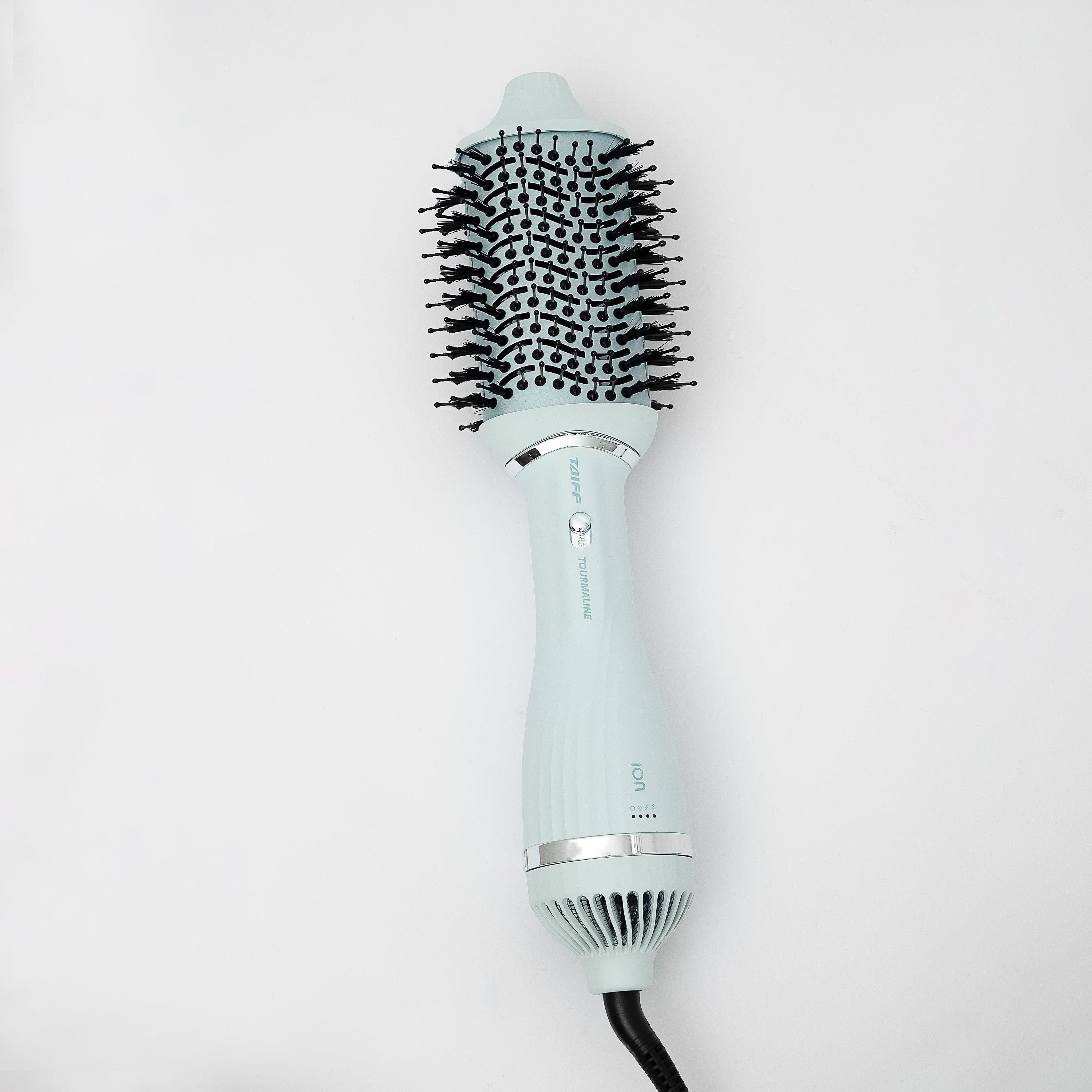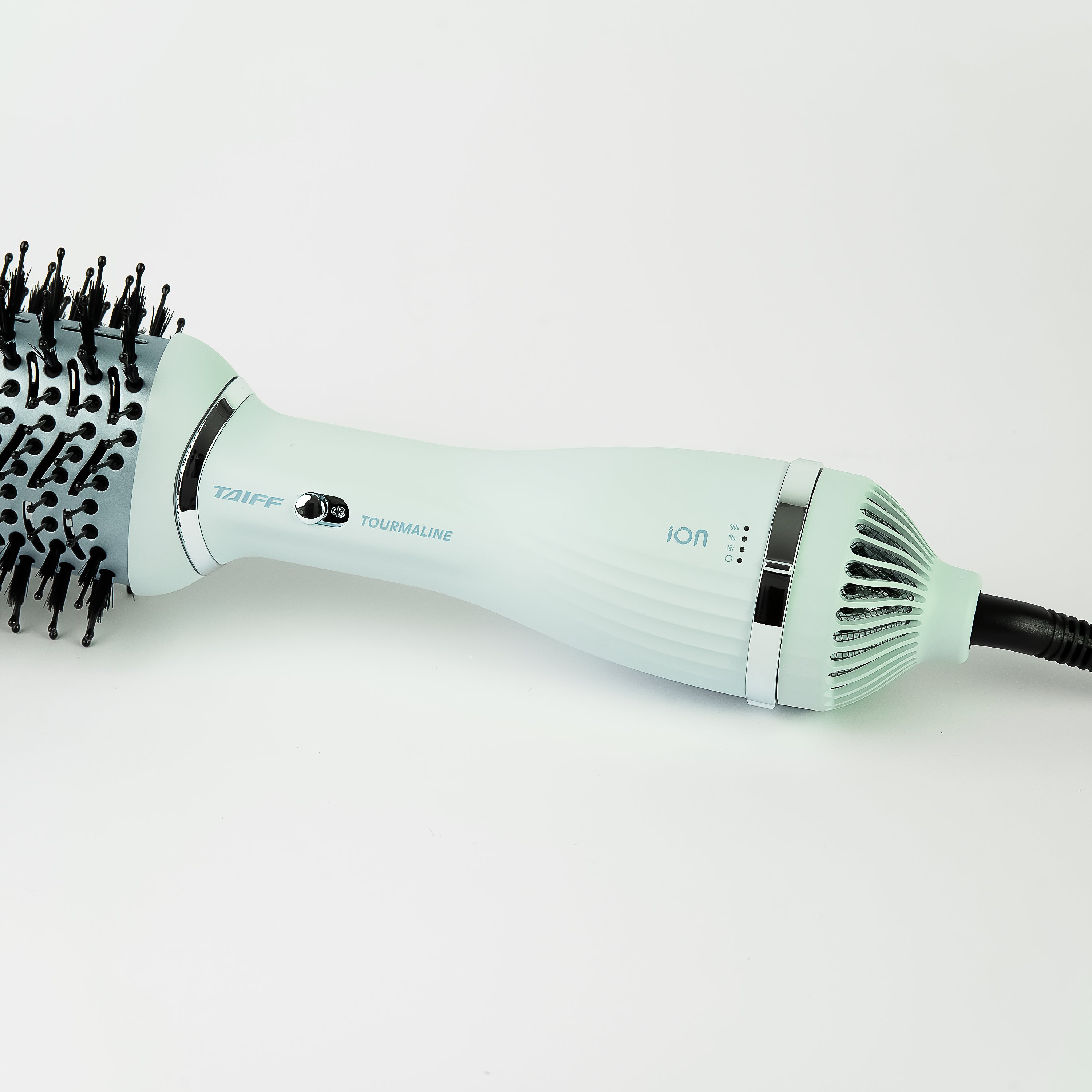 The Taiff Tourmaline Hot Brush delivers salon‑grade styling with a powerful 1200 W motor combined with Tourmaline Ion and ceramic technology to seal cuticles, reduce frizz, and boost shine; its versatile 2‑in‑1 design lets you swap between oval and paddle brush heads or detach for pre‑drying, while three heat and three speed settings plus a cool‑shot function ensure tailored, long‑lasting results; an ergonomic body, 1.8 m swivel cord for tangle‑free handling, and Inmetro certification complete the package—dry, smooth, volumize, and style in one easy tool.